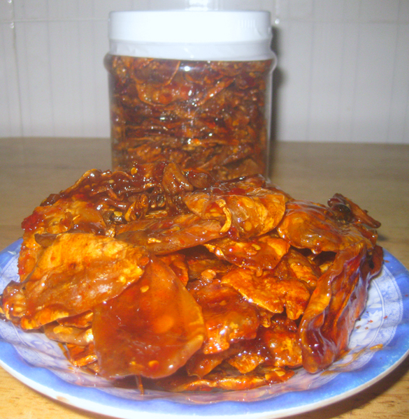 Ai đã từng ghé qua Quy Nhơn hẵn đã từng thưởng thức thứ đặc sản có tên gọi là khô mực ngào ớt. Những con khô mực ngào ớt óng ánh đầy hấp dẫn cho những cuộc nhâm nhi. Khô mực ngào ớt có vị cay cay của ớt tương quy nhơn, chút vị mặn, chút vị ngọt của mực đảm bảo quí vị ăn vào sẽ nhớ mãi hương vị rất độc đáo của món này.